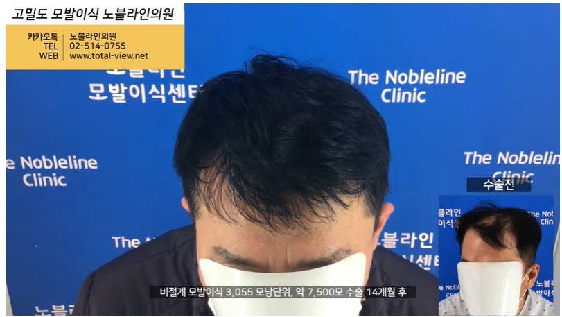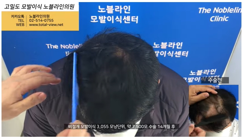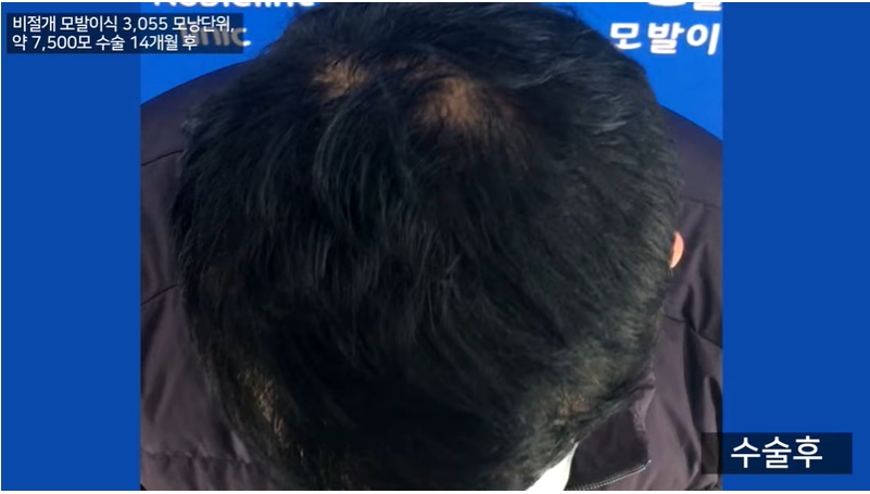 3,055 모낭단위, 약 7,500모 수술 14개월 전 vs 후